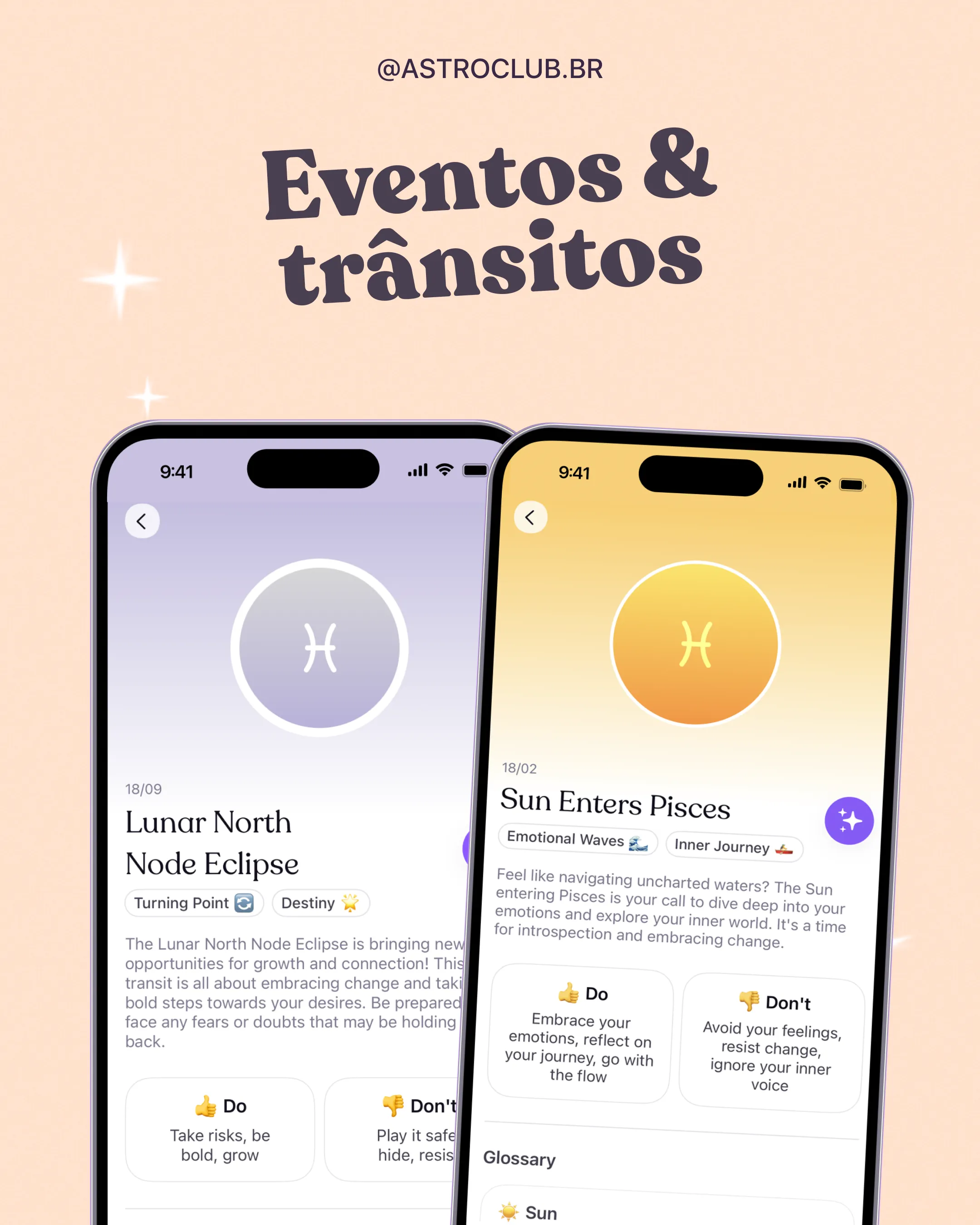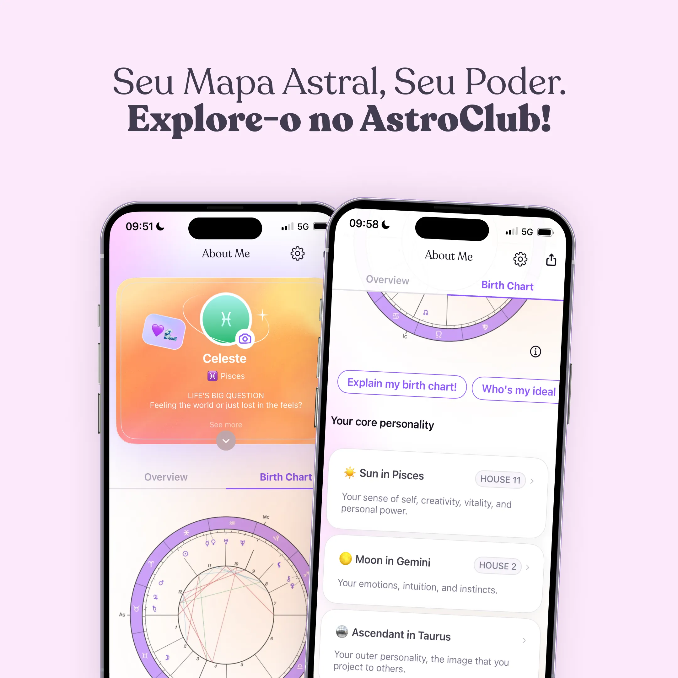 Seja no crush, com seu melhor amigo ou em busca de clareza, o AstroClub é sua ✨bússola cósmica✨.